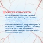 Для многих пациентов с заболеваниями системы крови, онкологическими и гематологическими заболеваниями единственным шансом сохранить жизнь является трансплантация костного мозга от донора. Гемопоэтические (кроветворные) стволовые клетки донора, которые образуются в костном мозге, способны прижиться в организме больного человека, дать начало новому, здоровому кроветворению и позволить пациенту полностью выздороветь.